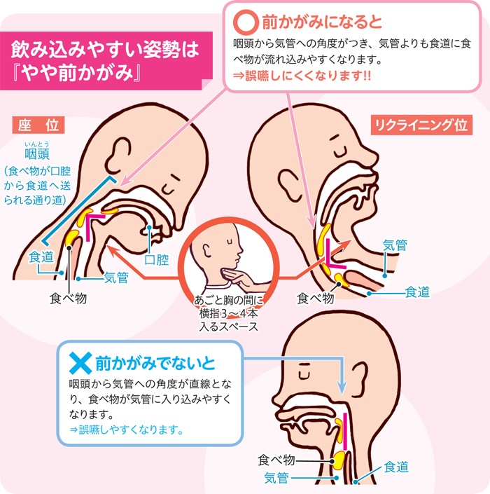 アゴが上がると気道が開き、誤えんしやすくなります。